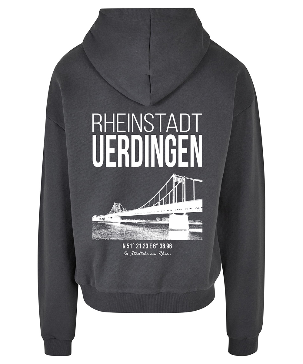 Heimatstoff Uerdingen – Hoodie „Städtche am Rhien“ – Dunkelgrau Oversized